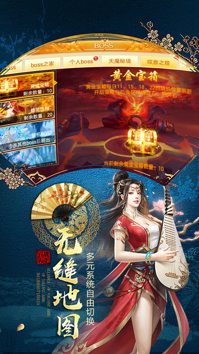 全开放制,玩家可随时随地展开激烈厮杀!更可打破区服限制,跨服竞技场、跨服战场、跨服BOSS,汇聚各地勇者,进行一场旷世对决!