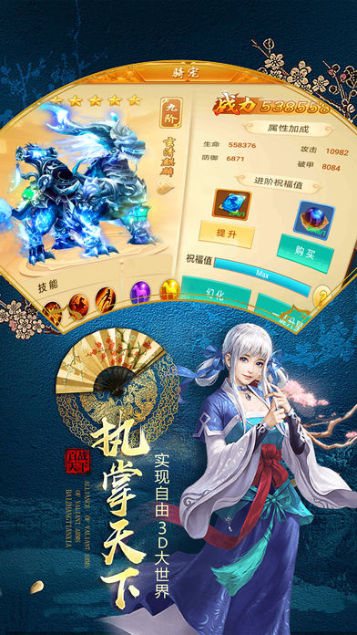 这是一款纯正的题材3DRPG手游。全地图争夺BOSS爆出神装,自由交易等开放式玩法,全新演绎即时战斗手游的时代。多样的技能与装备让玩家享受一场视听觉的盛宴!仙女掠夺,究竟谁能获得最艳丽的女神!霸气的飞行坐骑,让你在全服中傲视群雄,称霸天下!跨服战场,开辟团战的新天地。