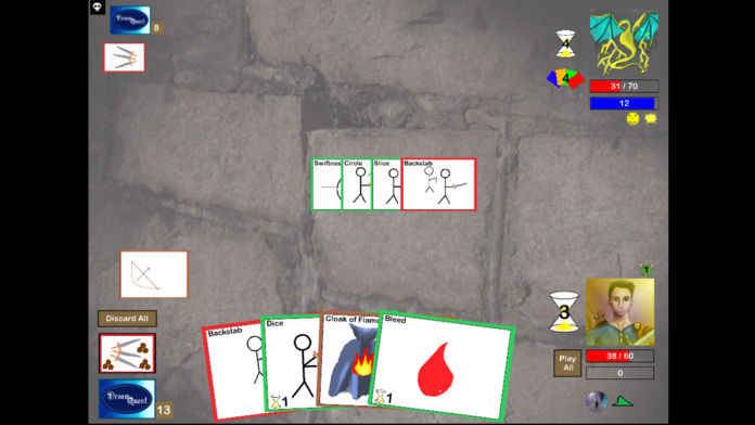 多达10种英雄供你选择(盗贼、战士、法师、牧师、死灵法师、德鲁伊、游侠、刺客、圣骑士、武士、吟游诗人、龙与教授),每个英雄皆有其独特的天赋与卡牌组合。战士自带武器,盗贼擅长背刺,法师掌握冰、火、毒等多种法术,德鲁伊则能化身狼人等。(ps:教授实在是太过精彩了)游戏中的成就系统颇似以撒的结合,解锁成就的同时也会开启新的角色、卡牌与天赋。有些成就的解锁难度颇高,令玩家感到某些卡牌或角色难以获得,但令人欣喜的是!!!这款游戏的成就可以通过购买获得!每局游戏结束时,你将获得一定的成就点数,积累足够后便可购买多种成就。游戏中的战斗通过与怪物互出牌来进行,卡牌种类包括行动卡(消耗行动点)、法术卡(消耗法力值)、攻击卡、法力卡(补充法力)、祈祷卡、被动卡与装备卡。