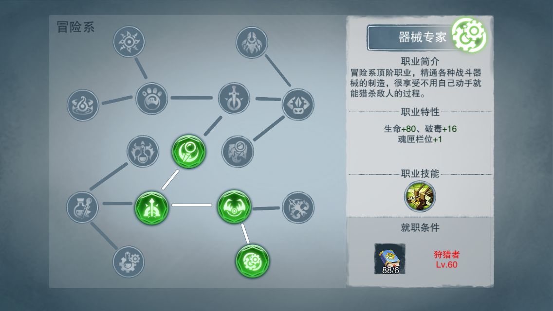 冒险系的玩法较为复杂,其最大特点在于能够利用魂匣窃取地图上任意怪物的天赋进行搭配。换句话说,冒险系伙伴的天赋技能组合极为丰富。加之高级后职业特性差异显著,体验感将截然不同。例如,机械专家专注于制造弩车,狩猎大师则需从敌人背后发起攻击,甚至还有奶系的转职方向可供选择。
