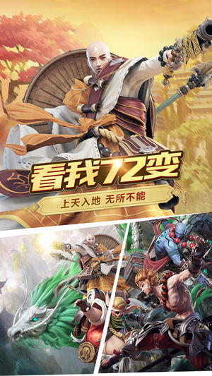 独创七十二变变身系统,一键化身为《西游》中的神、魔、仙、妖族英雄,外形炫酷、天赋各异的角色与技能,充分满足玩家的所有幻想。