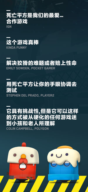 《死亡平方》是一款适合1人或2人共同协作的益智游戏,以协调、合作与机器人爆炸为主题。