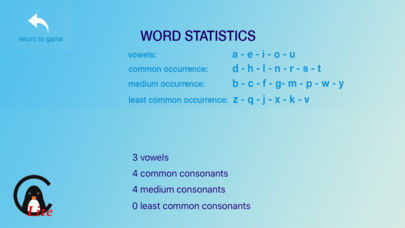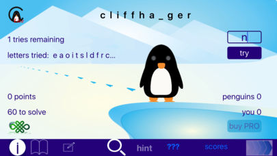 挑战在于通过发现字母的组成部分来揭示词汇。借助于统计数据和一只可爱的小企鹅的帮助,助您在游戏中大显身手!