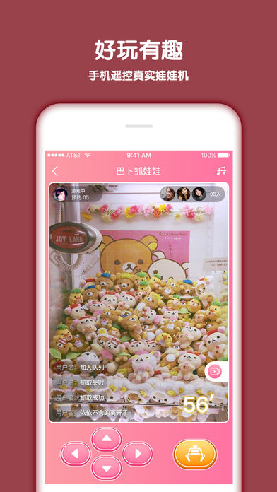 真实模拟线下抓娃娃的亲身体验,登录APP,想抓就抓,轻松在家享受抓娃娃的乐趣!