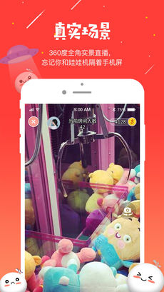 2.为玩家提供360度全景直播,确保无延迟、无卡顿的极致游戏体验。打开手机抓娃娃,流畅的操作感将使您忘却与娃娃机之间的屏幕距离。