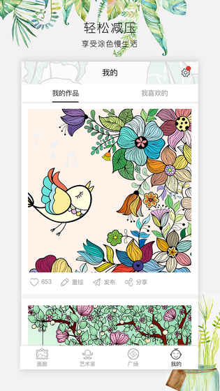 分享:您可以直接将作品分享到朋友圈,让您的微信、微博好友一同欣赏这幅美丽的涂色佳作。尽情展现自己的天赋吧!