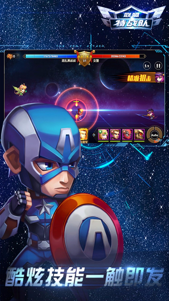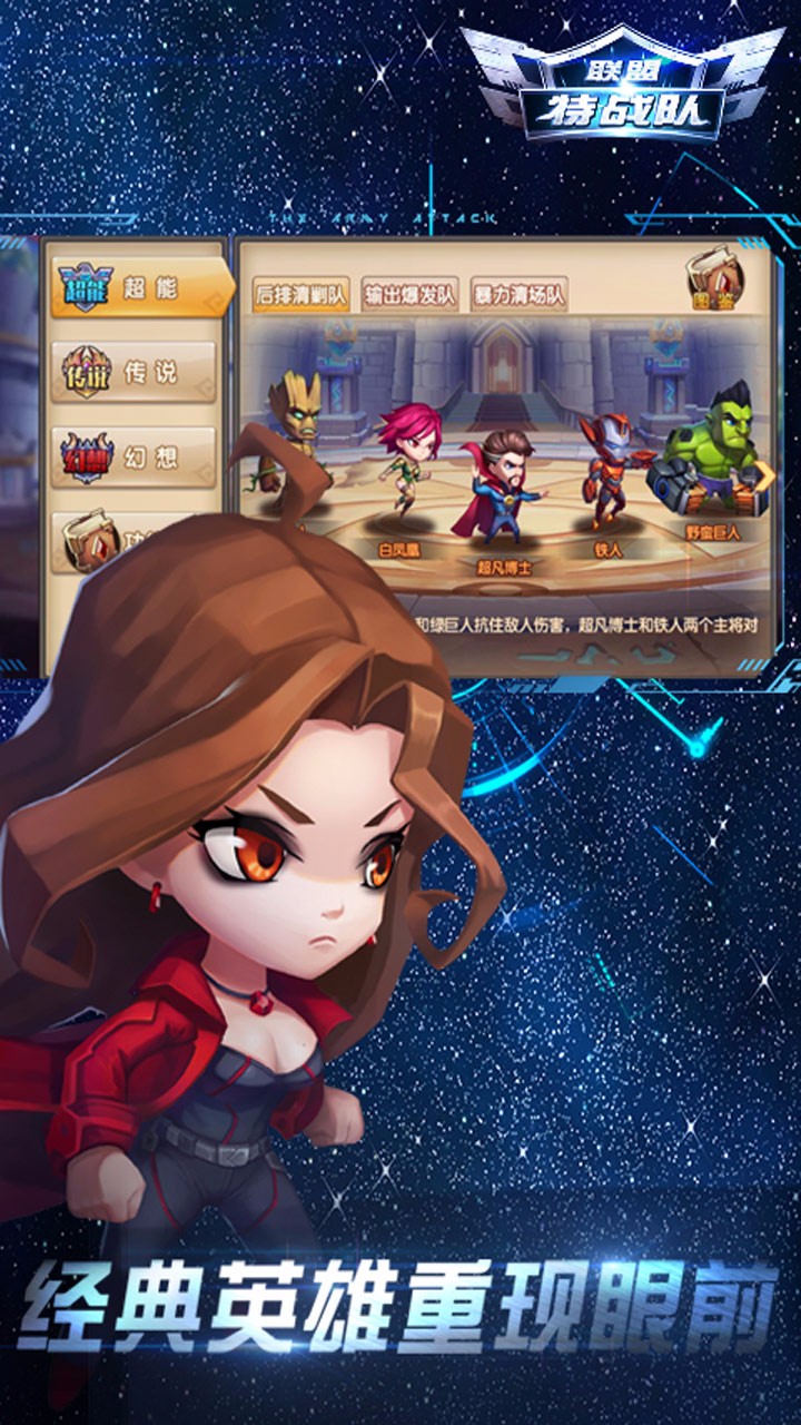 《联盟特战队》是一款创新的即时碰撞卡牌巨作,汇聚明星英雄于之中,强力的精灵为您助战,炫酷的合体大招,巧妙的技能搭配以及独特的怪物AI,足以让您尽情畅玩!铁人、雷神、恶魔猎手将携手维护时空,逆转未来;丰富的活动,精彩的内容,缤纷的互动,丰厚的奖励,人人皆可参与,快来开启一段惊险刺激的时空大逃杀冒险之旅吧!