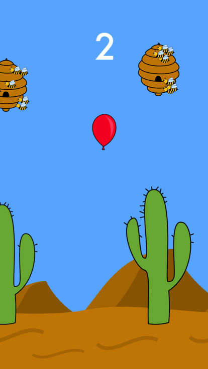 +躲避仙人掌和蜜蜂,勇攀新高。如果气球不慎碰撞到仙人掌、蜜蜂、蜂巢、地面,或者飞出界限,游戏将宣告结束。