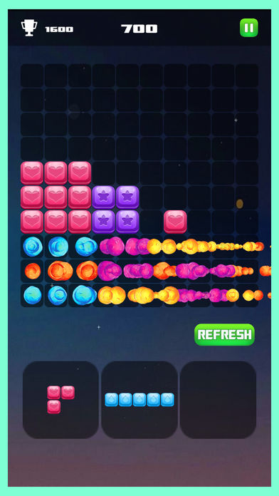 通过拖动下方的模块,将其填充于方框网格中,只需将横向或纵向的方格填满,即可消除方块。