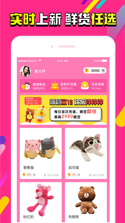 开心娃娃机——时尚潮流的娃娃玩偶以及各类流行商品,如今您可以足不出户随心所欲地抓取!全民直播遥控千台机器,新用户登录即可享受免费抓取的机会,新包上线更有众多优惠等您来享!