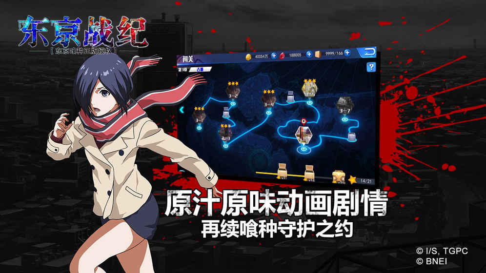基于原著《东京喰种》动画进行改编,由日本万代南梦宫与成都数字天空联合研发发行,作为国内唯一的正版授权东京喰种手游,力求真实还原。