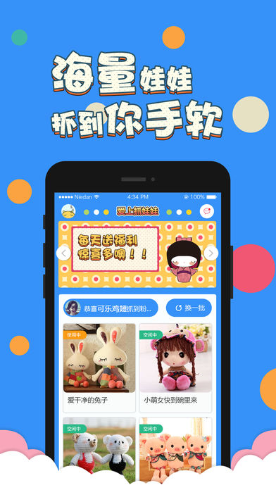 爱上娃娃机,一款全新上线的抓娃娃平台。在这里,海量正品娃娃静待你来捕捉,各种精彩奖品随时可领,只需轻触手机,随时随地便能体验抓娃娃的乐趣,令人心潮澎湃!