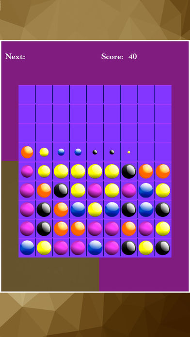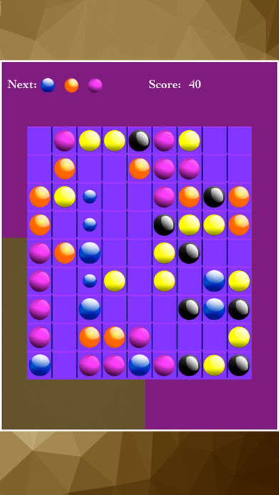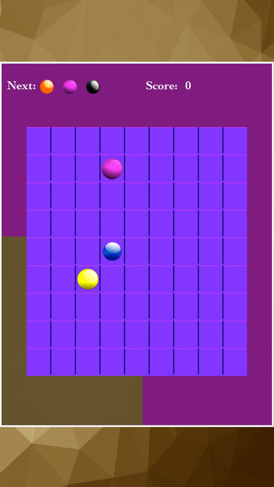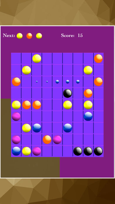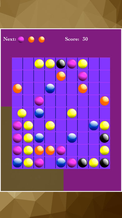 此游戏的目标十分:通过将至少五个相同颜色的小球排列在同一水平或垂直行上,以击败自己的高分。若成功达到五个或更多的小球,你将获得分数,并且这些小球会在屏幕上消失。每次移动后,会在随机位置生成三个新的小球。如果没有可移动的球,游戏将宣告结束。