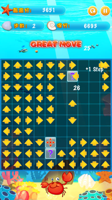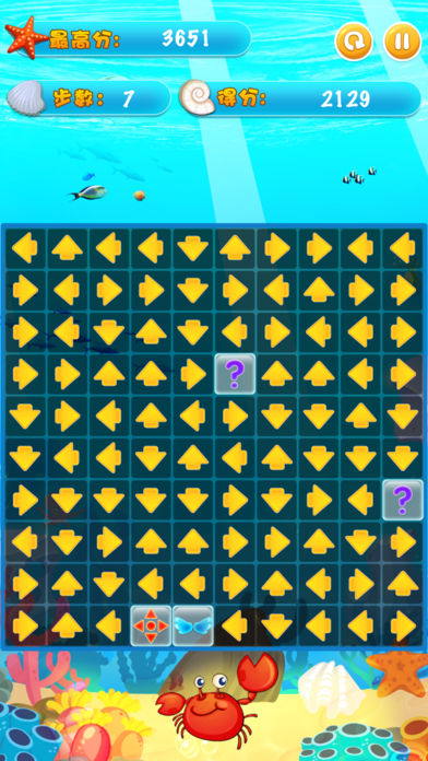 1. 亲爱的玩家,在游戏界面,您所需的操作仅是轻点一下黄色箭头,它将开始移动,并吞噬其所碰到的其他箭头和道具。