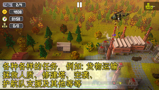 丰富多样的任务类型,包括货物运输、拯救人质、修建塔楼、空袭、护航支援等