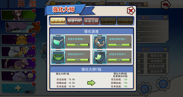 装备强化:当身上四件装备的强化等级达到或超过10级后,系统将根据最低强化等级的装备给予属性加成。
