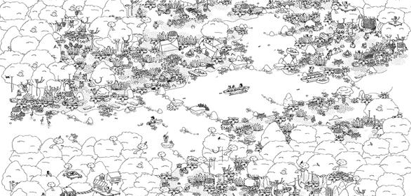 在那充满互动与迷人小景的插画中,探寻隐藏的人物。拉起帐篷,砍断灌木,推开大门,甚至戳戳鳄鱼!哈哈哈哈哈!