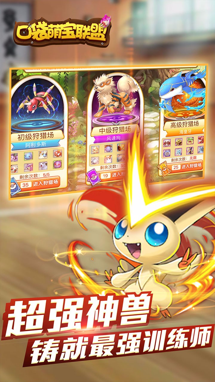 《口袋萌宝联盟》是一款兼具精灵养成、与策略的制手游!拥有500多只经典精灵与400多种技能的自由搭配,60多处崭新场景,更有虚空来袭、传说梦境、训练师庄园及大师联赛等玩法,独特的进化与配合体系助您培养出终极!
