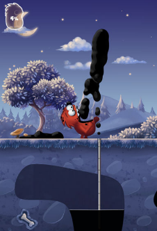 在游戏中,玩家通过长按屏幕来调节油管的长度,以便让小怪兽顺利饮用地底的石油。