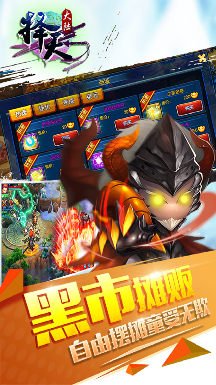 《择天大陆》是手机网游中首款极具创新的百变巨作,画面精美绝伦,玩法丰富多样,为你带来酣畅淋漓的降魔之旅。近百种多样化的造型任你选择,玩游戏的同时,风格亦可千变万化;大型帮派战系统让你在手机上也能体验到PC端那种快意战斗的激荡;全新国战系统,唯有团结一心,方能攻克我们的城池。