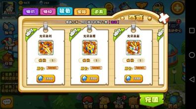 前期最为重要的是什么?当然是‘’装备‘’。优质装备将使对手的伤害降至个位数,紫色以下的装备无需强化,切勿浪费金币,因为金币在后期将显得尤为紧缺。对于土豪玩家而言,可在商城购置一套光荣套装(金装),并进行满级强化,这样就可以毕业了(首充300元以上推荐购买)。小R玩家则应优先购买一套2400钻石的虔诚套装(紫装),并强化至满级,适合于过图和擂台。而非R玩家则可以选择在商城购买装备大礼包(紫装),内含3件奇迹套装件,或是购买虔诚装备的散件,3天后便能凑齐一套。金币应避免浪费在和强化紫色以下装备上。关于强化装备,或许你无法将一套装备强化至满级,因此应想方设法获取金币,缺乏金币将是一个问题,因此建议每天用钻石购买一些金币。