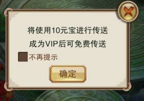 (注:非VIP每次传送需支付10礼金,成为VIP后即可享受无限免费传送的特权!)