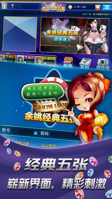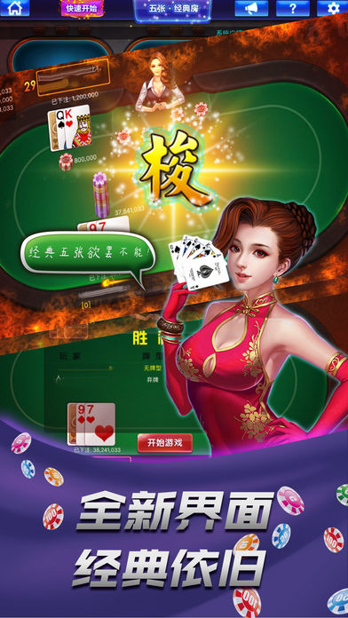《余姚经典五张》常在港澳的赌神系列电影中闪耀,是华仔、发哥、星爷等赌神们钦点的游戏,其中五张又称沙蟹、谷啤,其英文名为Showhand,学名为Five Card Stud,这是一种在扑克游戏中流传广泛的玩法。以五张牌的排列组合、点数与花色的大小来决定胜负。梭哈在全球中占据着崇高的地位,深受人们的喜爱!让我们一同直面内心深处,开启一场博弈的精彩冒险吧!
