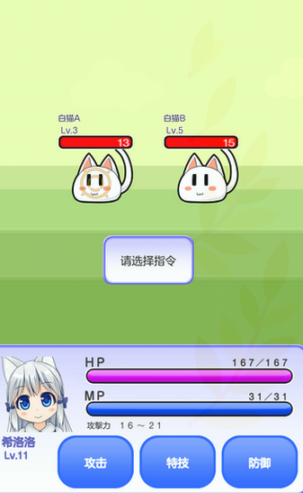 第二个特技:名称:全员不放过喵,mp消耗:12,技能描述:饶不了你们,每一位敌人都无法幸免。此技能可攻击全部敌人,刷杂鱼时必不可少。