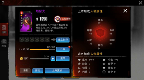 【刻印】魂兽镶嵌的刻印将永久增加角色属性,镶嵌满刻印后可晋升,进一步提升角色属性。晋升等级与魂兽等级相关。