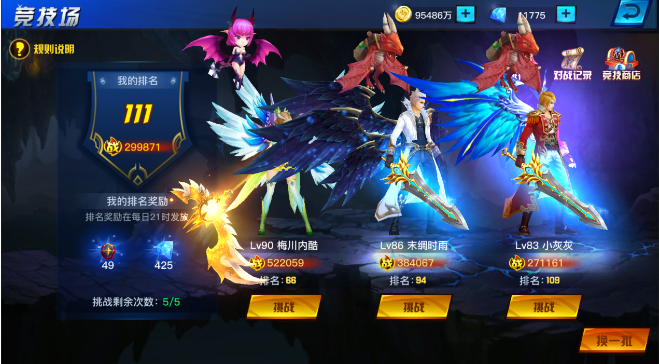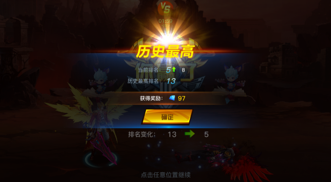 在经历一场艰难的战斗后,若你战胜对手获得胜利,你的竞技场排名与被挑战者的原排名将互换,并获得丰厚的奖励。若遗憾落败,你的排名与被挑战者的排名将保持不变。