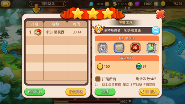 最后的途径便是扫荡关卡,扫荡关卡需消耗体力,若你有大量余力,便可前往扫荡,除了获得基础的经验与金币外,还有概率获得其他丰厚的物品奖励。