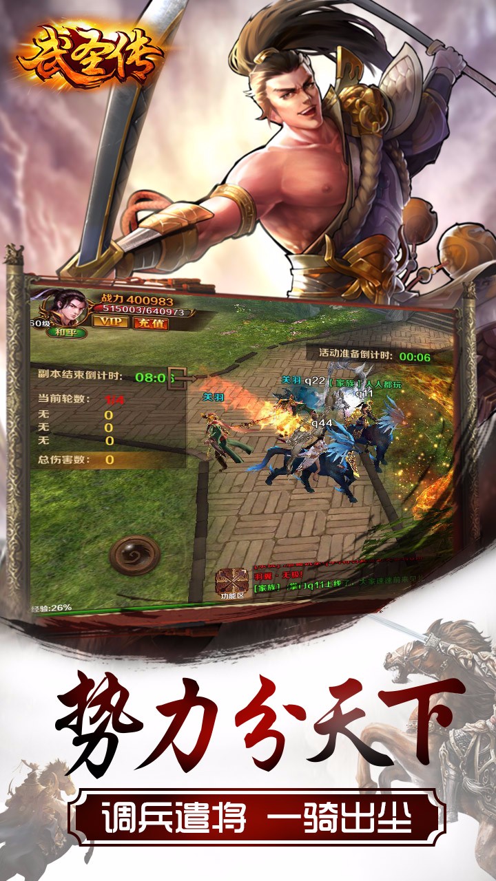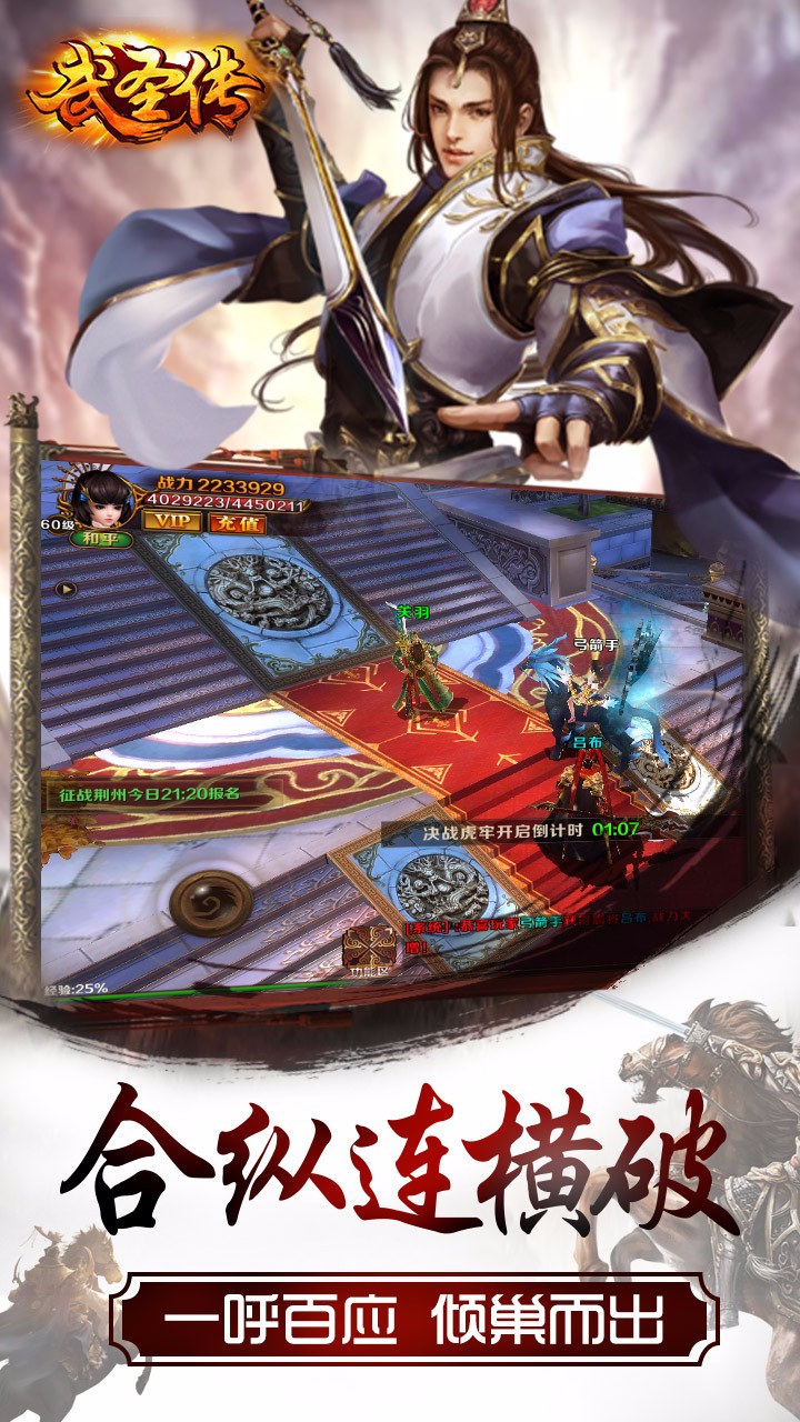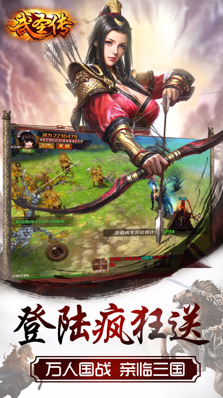 《武圣传》是一款RPG威力加强版的手游,传承经典RPG玩法,战、法、弓、剑四大职业全地图自由PK,100%10倍掉率,全身金装,超酷炫大翅膀。连续登录送V8+神兽坐骑,福利多多,怎一个爽字了得!祭出你的武器,披上你的铠甲,加入万人攻城大战,一起吧!