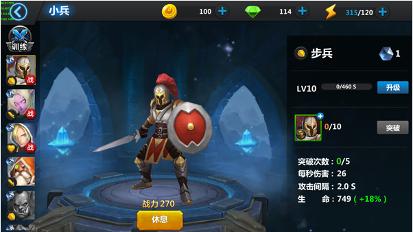 引入小兵是《英雄归来》的一大特色。《英雄归来》共有十一种小兵,包括肉盾、输出和治疗,不同小兵擅长的技能各异。小兵可通过时间提升等级。收集一定数量的小兵突破卷轴,即可进行小兵突破,提升各种属性。
