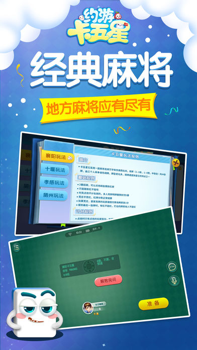 约游卡五星是一款趣味性与耐玩性兼具的手机卡,华丽的界面经过全新升级,为您带来视觉上的极大震撼。同时,系统更加简便流畅,让您快速开启对战,尽情畅玩卡五星麻将。