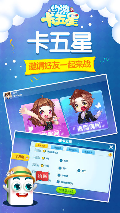 《约游》是一款玩法变幻多端、趣味横生的棋牌娱乐手游,游戏秉承了经典的卡规则,为玩家带来了激情澎湃的游戏体验。即时匹配、十秒开局、真人对战,公平公正,尽情享受卡五星带来的无限乐趣!