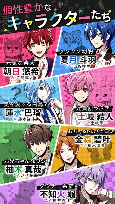 《彩色动物偶像》是由Voltage游戏公司倾力打造的一款以动物偶像为主题的模拟养成类手机游戏。游戏以清新治愈的日式漫画风格为主,玩家可以收集各式各样的兽耳美男,悉心培养与养成他们。不同性格与外形的兽耳美男,定能满足女性玩家多样的。