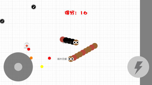 2、小心!蛇头若碰到其他贪吃蛇则会遭遇灭顶之灾,并且会产生大量小圆点。