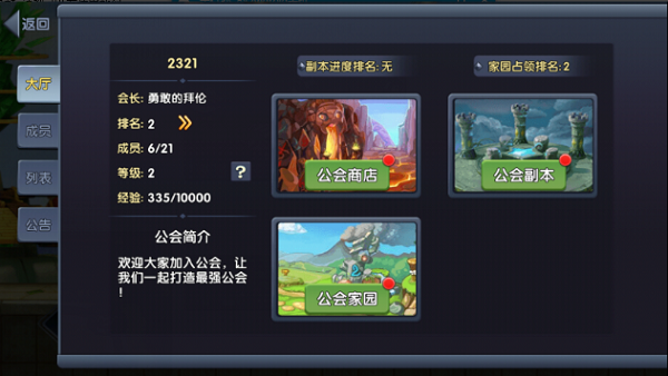 2. 公会成员:公会伙伴们的相关信息均展示于成员列表之中;