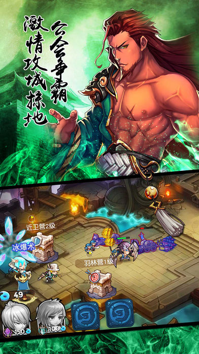 - 阵容搭配、城防建设、资源掠夺、真实再现三国沙场烽火连天的壮丽景象!