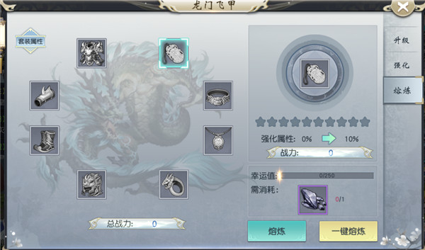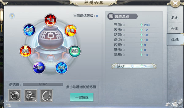 通过鉴定获得的各类法器可进行熔炼,提升其属性。