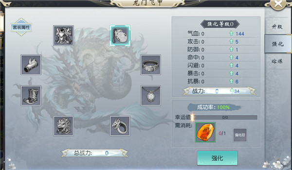 消耗【龙纹石】强化龙门飞甲装备。