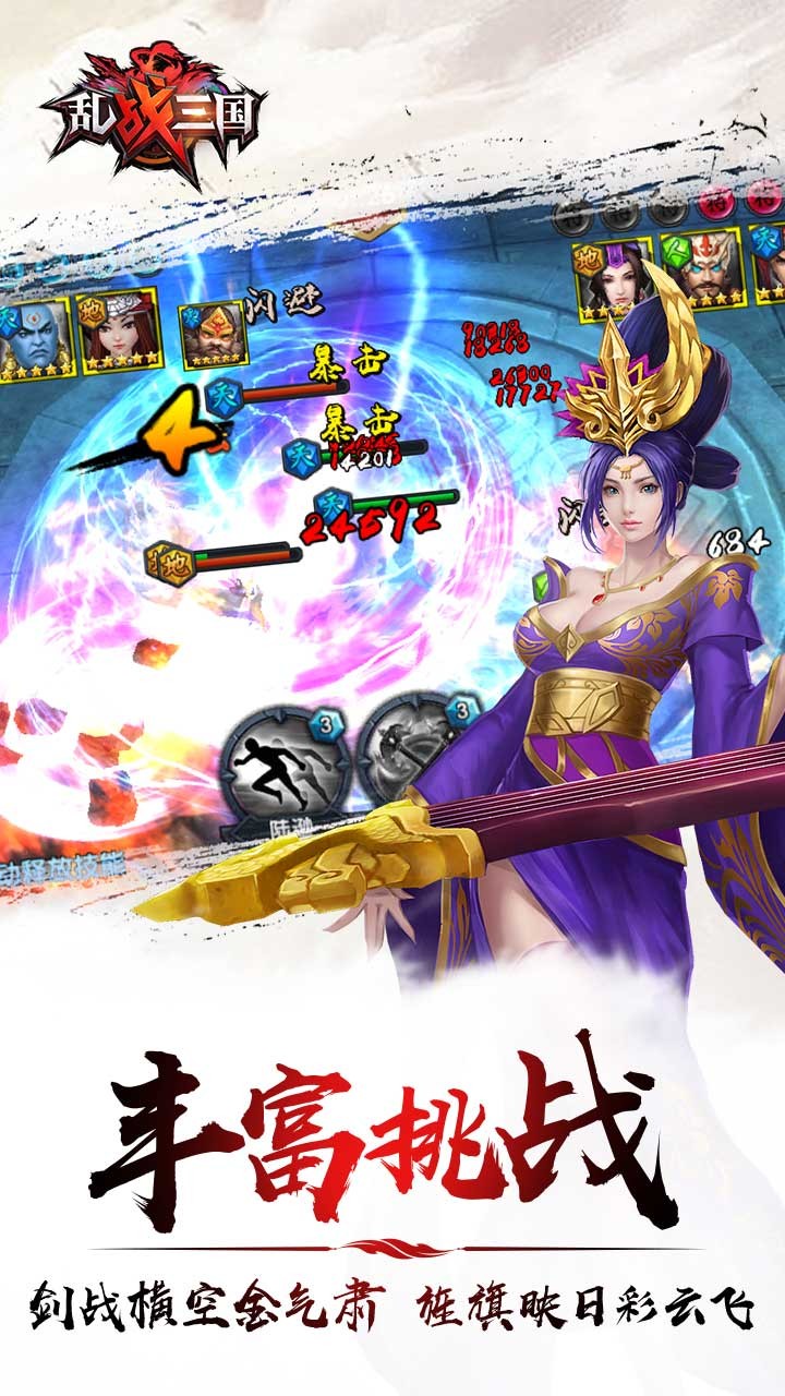《乱!战三国》是一款以三国为题材的 与武将卡牌结合的手游。基于Unity3D引擎开发,游戏的核心玩法围绕着畅快的闯关、阵营与挑战副本展开。