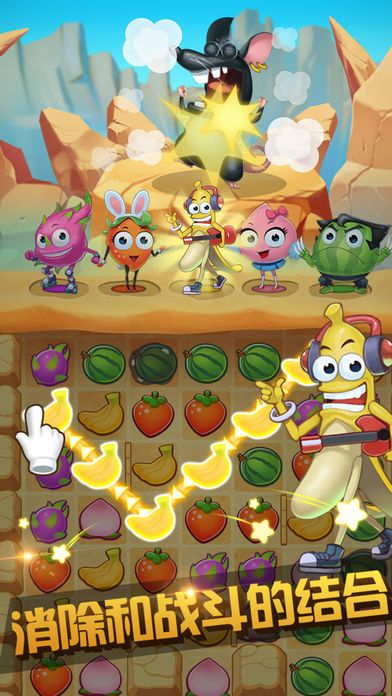《香蕉人:》是一款独创融合卡牌养成元素的休闲连线消除游戏。游戏中,各具特色的水果人形象与邪恶憨态的老鼠坏蛋交相辉映,经典的消除玩法和策略性极强的丰富关卡,将带您体验一场水果人联盟与老鼠反派之间的战斗盛宴!