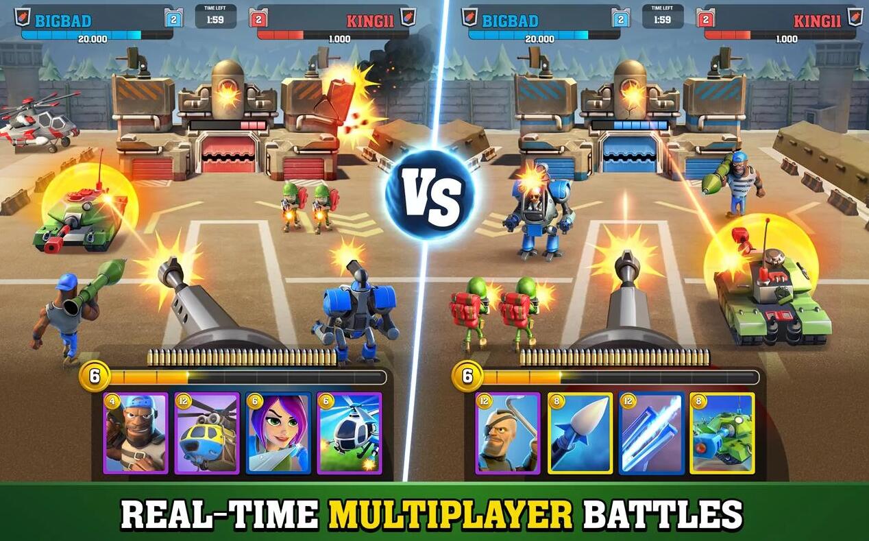 组建一个强大的单位阵容,发起冲锋!40种独具特色的士兵、车辆、武器与基地防御,打造无敌战队!