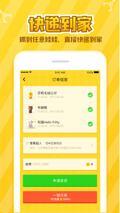 只需抓获两件或更多的娃娃,我们将为你包邮寄送至指定地址,当然,单件也将如约发货哦!