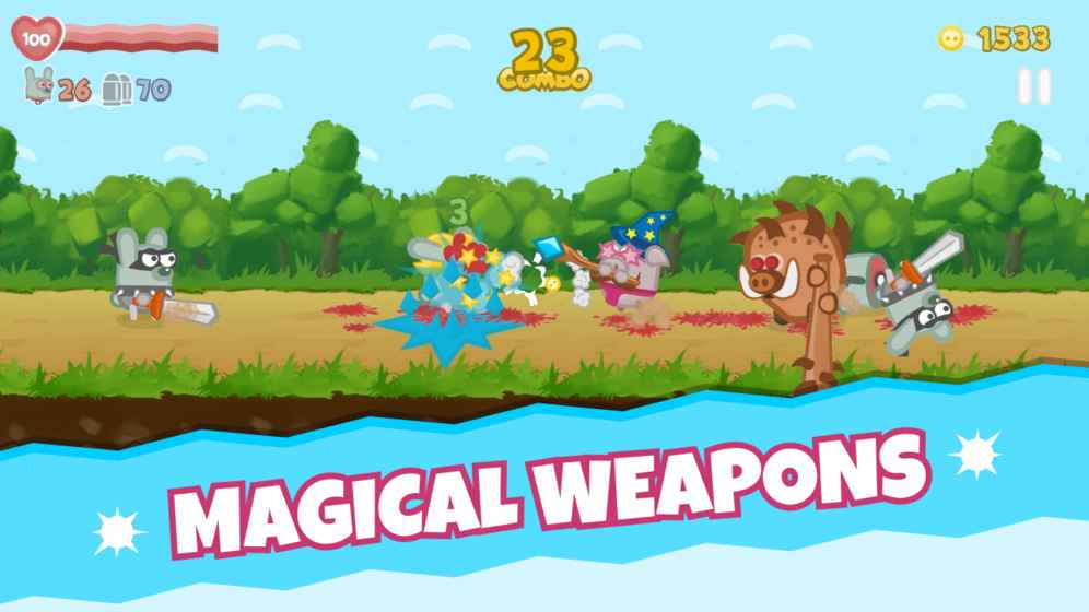 在这场激烈的格斗游戏中,小猪战士需勇敢面对成群的邪恶势力,奋勇作战。