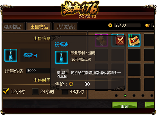 2、若因杀人次数过多,身上的武器遭受诅咒,使用祝福油则可降低诅咒值。诅咒值的增加将提高击杀其他玩家时爆出物品的概率。