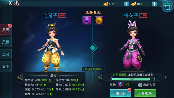 4、灵宠进阶成功后,将获得更炫、更酷的外型与更强大的属性;