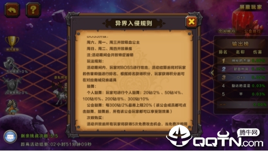 副本在周一、二、三、四、六、日的中午12:00至19:00开放。所有玩家拥有五次攻击机会。免费次数用尽后,亦可使用钻石进行购买!