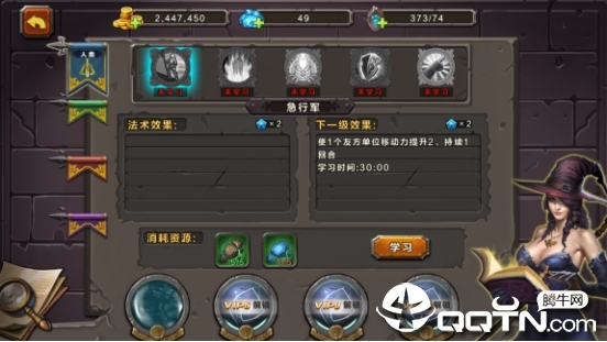 众所周知,四个种族的前三个法术为通用法术,可学习,仅需法术石,无需卷轴,学习难度低,消耗小。新手玩家无论选择哪个种族,优先学习人族的治疗与精灵的月火术,并将这两个法术优先升级至5级(若缺乏法术石可通过宝箱抽取)。佣兵的选择上,优先选择型并带有恢复效果的初级兵种,各种族均可,不宜选择易被BOSS群攻秒杀的佣兵,随后即可开始推图。